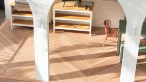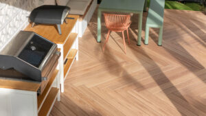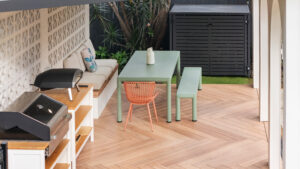 Pool areas are tough on decking, so this specification needed a resilient choice. Add in a design brief that called for a genuine timber aesthetic, and you now have a limited number of selections that would actually fulfil these requirements.- Thankfully, Eva-Last Pioneer decking is here!